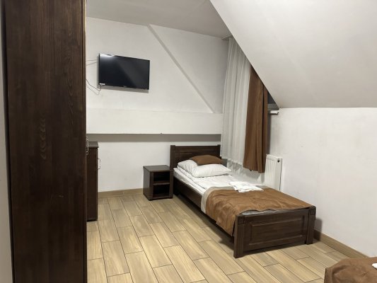 Номер тримісний коштував 700 грн, знаходився на останньому поверсі. Двері наче з картону, шумопоглинання - 0… кожен раз як хтось проходив повз наш номер, здавалося, що двері зараз вилетять.