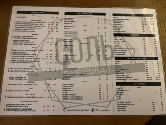 Сегодня впервые посетили гастробар Соль в Борисполе, как раз рядом с центральной ёлкой. Выбрали заведение по отзывам посетителей и ни грамма не пожалели, т.к и ... More Сегодня впервые посетили гастробар Соль в Борисполе, как раз рядом с центральной ёлкой.