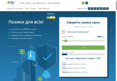 ify.ua - это именно тот сервис, который помогает в трудную минуту. Взял займ в первый раз, и переживал по поводу многократных переплат. Но на сайте ... More ify.ua - это именно тот сервис, который помогает в трудную минуту. Взял займ в первый раз, и переживал по поводу многократных переплат. Но на сайте есть множество компаний с низкими процентами. Заполнение заявки было простым и без лишних бумаг. Деньги пришли на счет быстро, и я остался доволен. Теперь я регулярный клиент и всем советую этот сервис!
