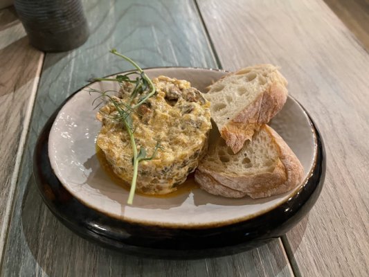 Замовив тартар з мідіями. Подача цікава, гарний дорогий посуд. На смак так собі, підсмажені мідії з цибулею, томатами та додаванням майонезу. Жирна страва вийшла. Не зрозумів яке це має відношення до тартару. Більш схоже на салат або другу страву. Але все ж таки непогано, який українець не любить багато майонезу )