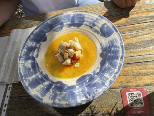 Непогано, але дуже посередні блюда. Замовляли тартар з яловичини, з першого погляду взагалі складно було зрозуміти походження цього блюда, але і на смак так собі. ... More Непогано, але дуже посередні блюда. Замовляли тартар з яловичини, з першого погляду взагалі складно було зрозуміти походження цього блюда, але і на смак так собі. В супі Гаспачо не вистачило пікантності. Чізкейк був непоганий.